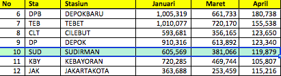 Commuter line facing difficult situation in income during lock down or PSBB. Data above showing how passenger decrease every month from January to April and it’s less than 20% passengers in April compare to January. Maybe we can see higher number starting from mid June, since lock down or PSBB already over.