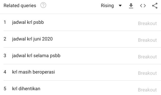 Keywords related to Jadwal KRL PSBB and Jadwal KRL Juni 2020 is breakout. This is an evidence that the passenger of commuterine in June is increasing because they are starting to look for schedules that can be adjusted to their arrival time at the station.