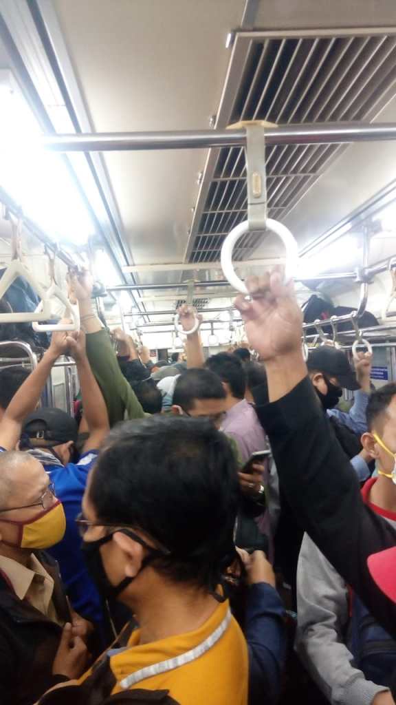 There’s not much different inside the commuter from Sudirman station and other commuter station, no physical distancing, no social distancing, especially in rush hour. The main weapon is only face shield or cloth/medical mask to avoid the COVID-19 attack from another person. This is a bitter truth during a pandemic.
