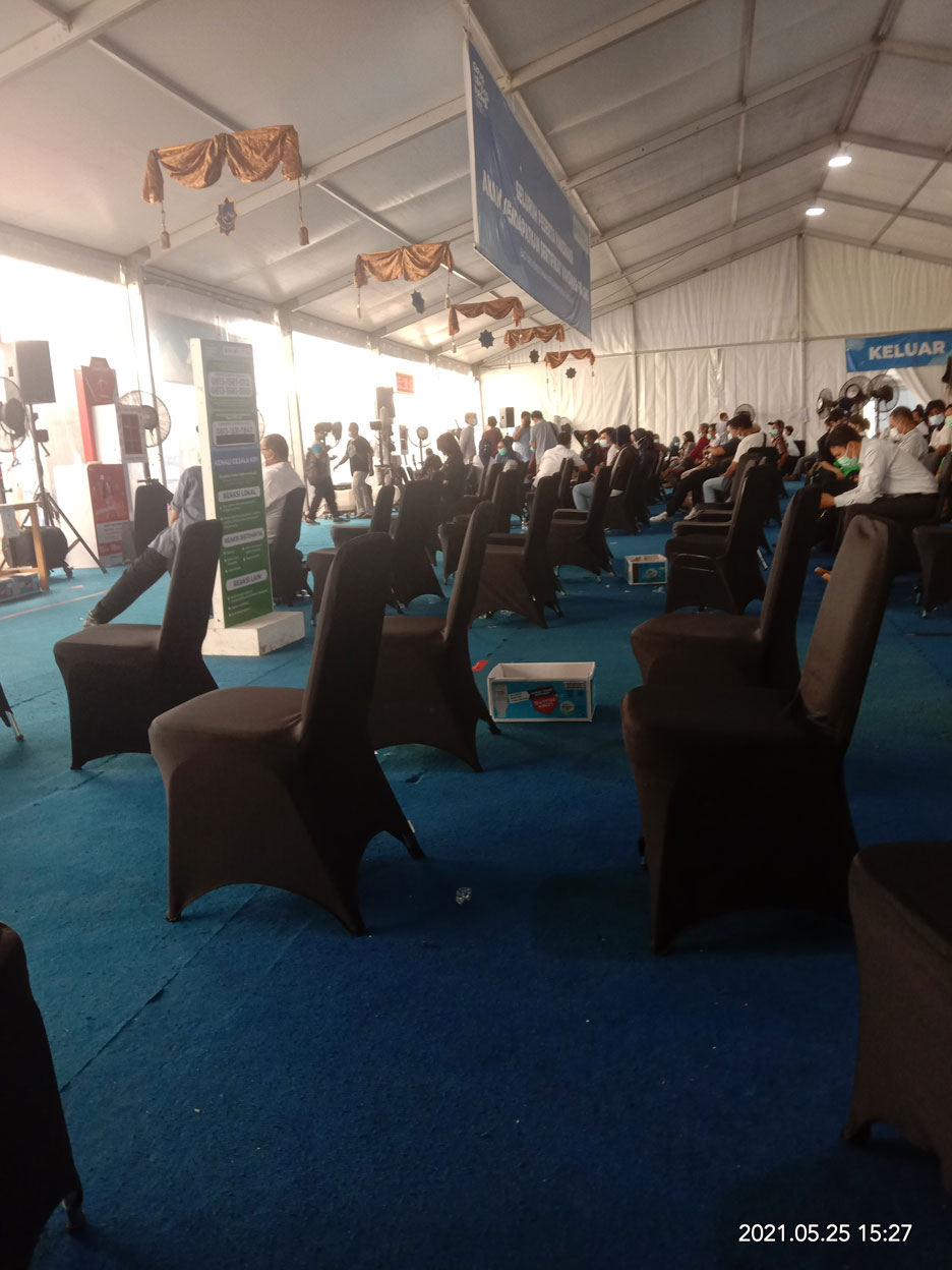 - Saya jalan sedikit sampai di Istora GBK dan diarahkan oleh satpam ke pintu masuk samping untuk vaksin pertama yang ternyata di pintu masuk ke dalam parkiran dan saya daftar dulu dan verifikasi whatsapp dari Good Doctor dan menyerahkan KTP lalu saya dikasih dua lembar kertas oleh petugasnya, saya disuruh mengisi bagian nama, alamat sesuai ktp, nomor ktp, nama perusahaan. Setelah itu saya diarahkan untuk jalan ke tempat verifikasi kedua untuk dikasih stiker vaksin pertama berwarna orange. Lalu saya harus keluar parkiran, jalan kaki naik turun untuk masuk gedungnya, naik tangga, memutari gedungnya, turun gedungnya, berputar ke arah pintu masuk depan.